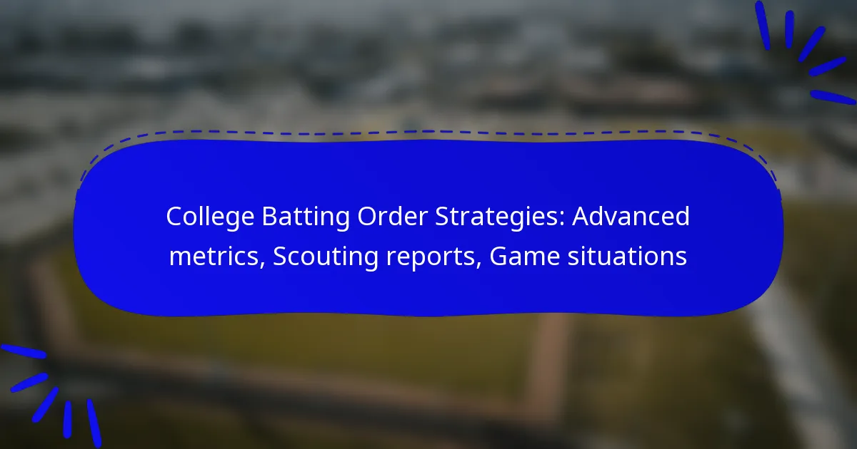 In college baseball, constructing an effective batting order requires a deep understanding of advanced metrics like on-base percentage and slugging percentage, which help coaches evaluate player performance. Scouting reports further enhance these strategies by revealing player strengths and opponent weaknesses, allowing for tailored lineups. Additionally, considering game situations such as score, inning, and pitcher type is essential for maximising the effectiveness of the batting order.