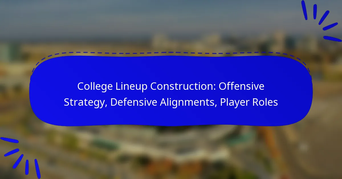College lineup construction is a vital process that integrates offensive strategies, defensive alignments, and specific player roles to enhance team effectiveness. By carefully selecting and positioning players, teams can optimise their performance and adapt to different game scenarios. Understanding the nuances of offensive and defensive tactics is essential for building a competitive roster that can thrive on the court.