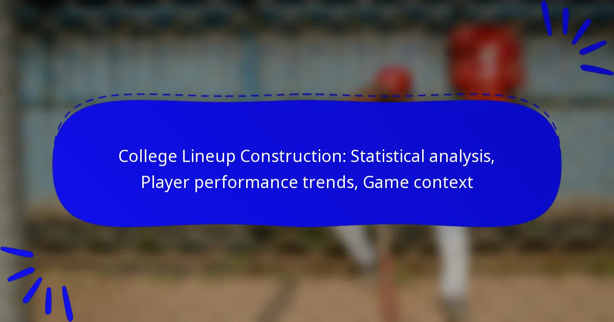 In college basketball, effective lineup construction relies heavily on statistical analysis, including key metrics such as player efficiency ratings and advanced statistics like Win Shares. By examining player performance trends, coaches can identify optimal combinations that leverage strengths and address weaknesses. Additionally, understanding game context—such as opponent strength and player conditions—plays a crucial role in shaping strategies that enhance team performance and increase the likelihood of victory.